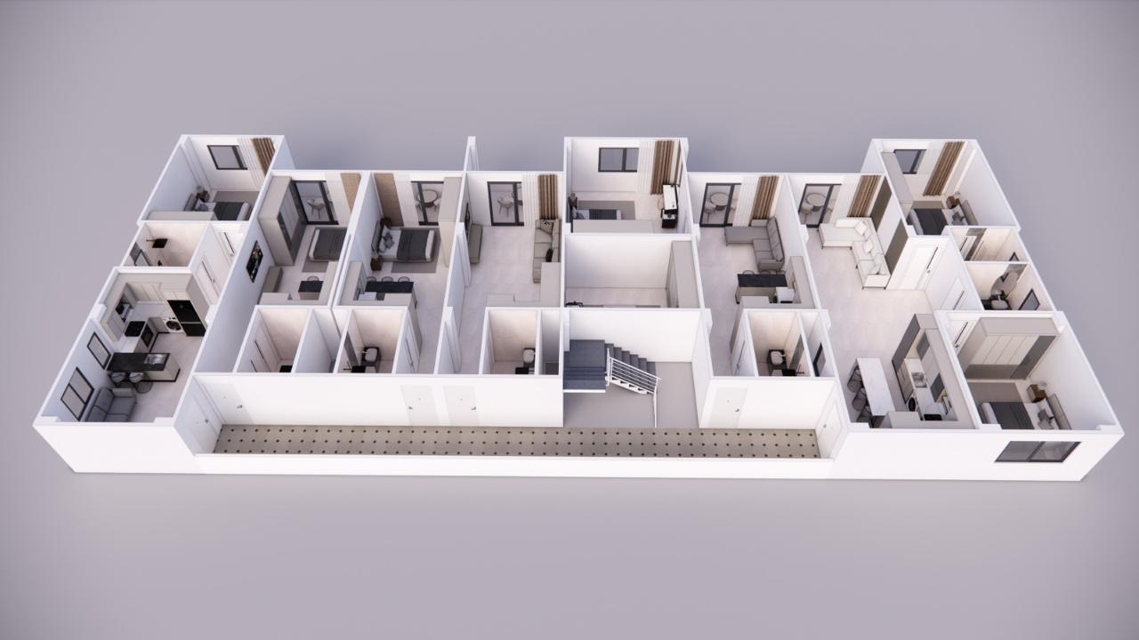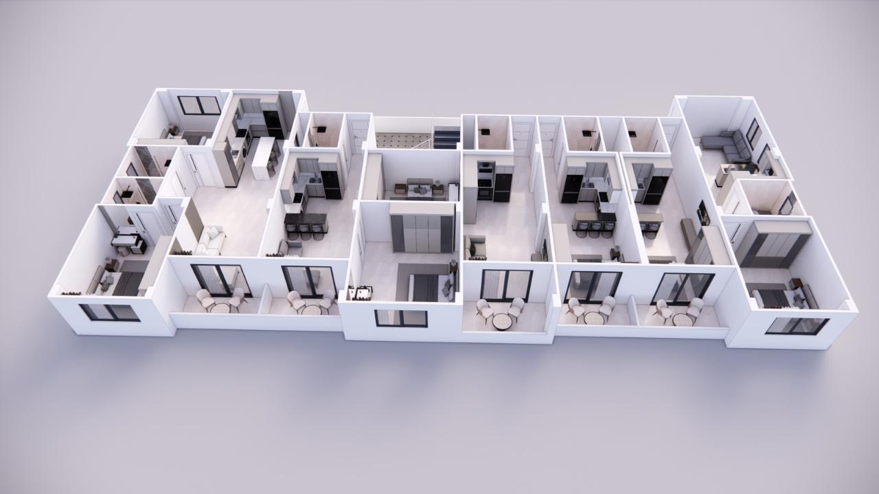 Two perspectives of the full Building 28 floor — the way the units fit together around shared corridors and stairs.