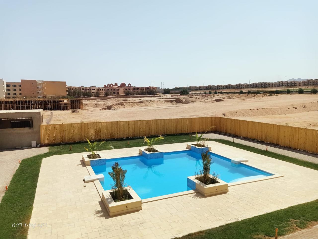 Buildings 26 and 27 are fully delivered and lived-in. They mark Viva Reef's modern phase: cleaner lines, larger windows, and a private central pool with a lounging zone shared between the two buildings.